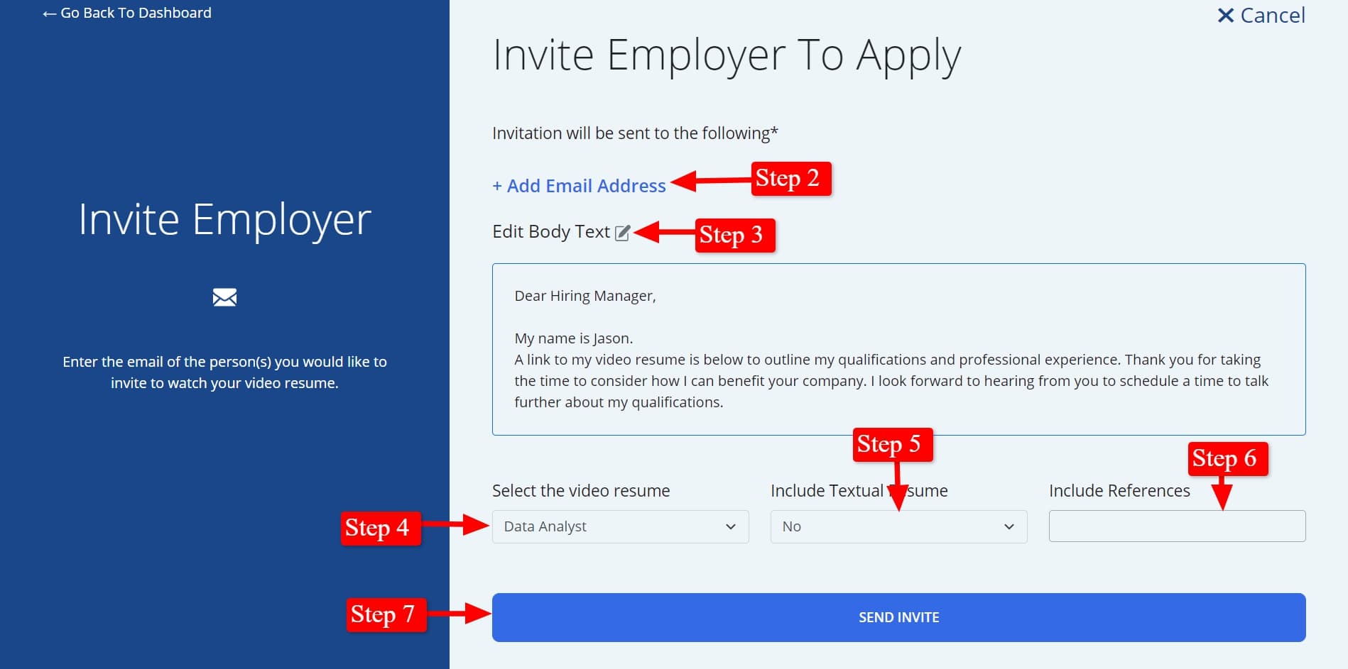 After you create a video resume you can invite potential employers to view your video resume.
